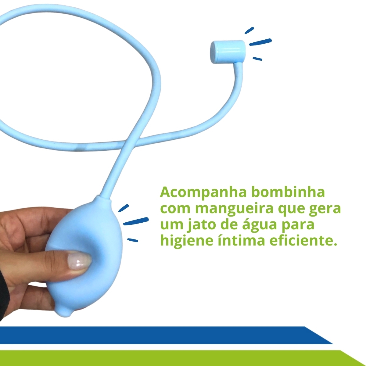 O produto conta com dois possíveis locais para posicionar o jato, tendo a possibilidade de realizar o banho desejado de forma completa e precisa, oferece também uma fácil usabilidade, uma vez que basta encaixar o jato no local desejado, derramar o líquido sobre a bacia e pressionar a bomba para que o jato seja expelido. Além disso possui diversos orifícios na parte frontal e traseira para que o líquido seja drenado de forma simples e rápida no local de sua preferência.