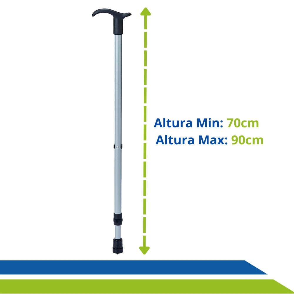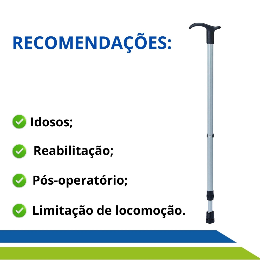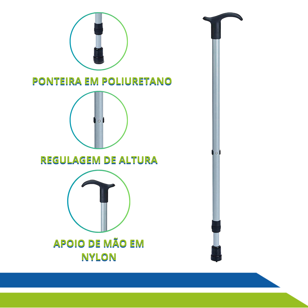 Possui 9 opções de ajuste de altura de 70cm a 90cm, apoio de mão anatômico proporcionando segurança e conforto para o dia a dia.