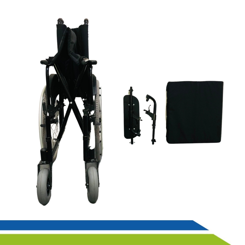 A Cadeira de Rodas MA3FO é constituída por duas partes laterais, unidas por meio de tubos em aço no formato de duplo X tubular, possui estrutura dobrável com fechamento lateral, sua estrutura é em Aço Carbono, o que garante a resistência e durabilidade, além de garantir conforto redobrado, pois conta com almofada no assento com espuma de 5 cm, e estofamento de encosto acolchoado em nylon de alta resistência proporcionando conforto para o dia a dia.