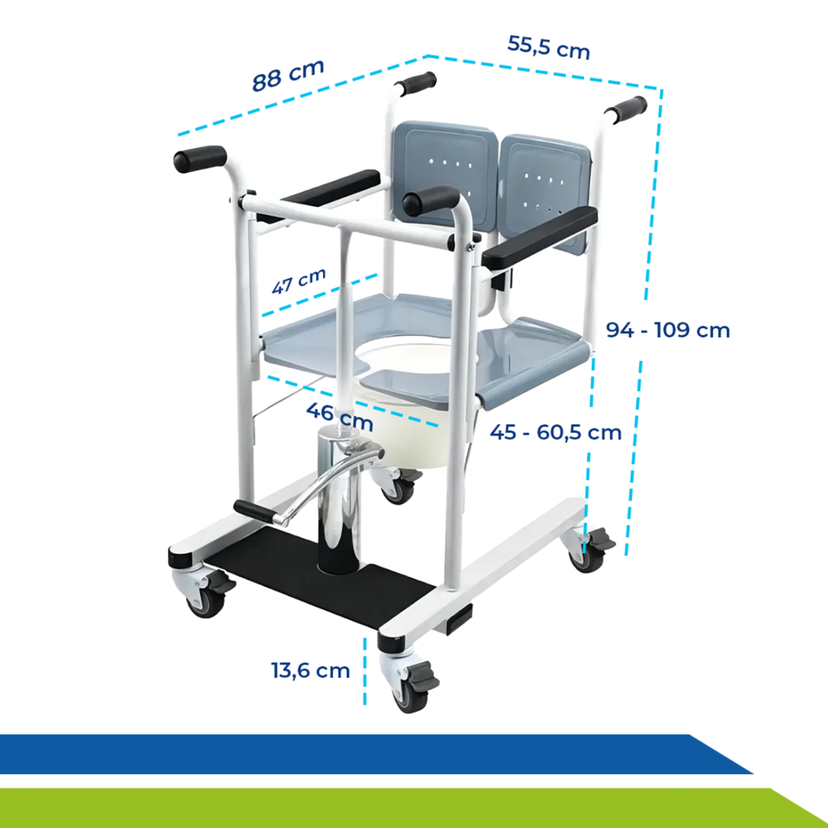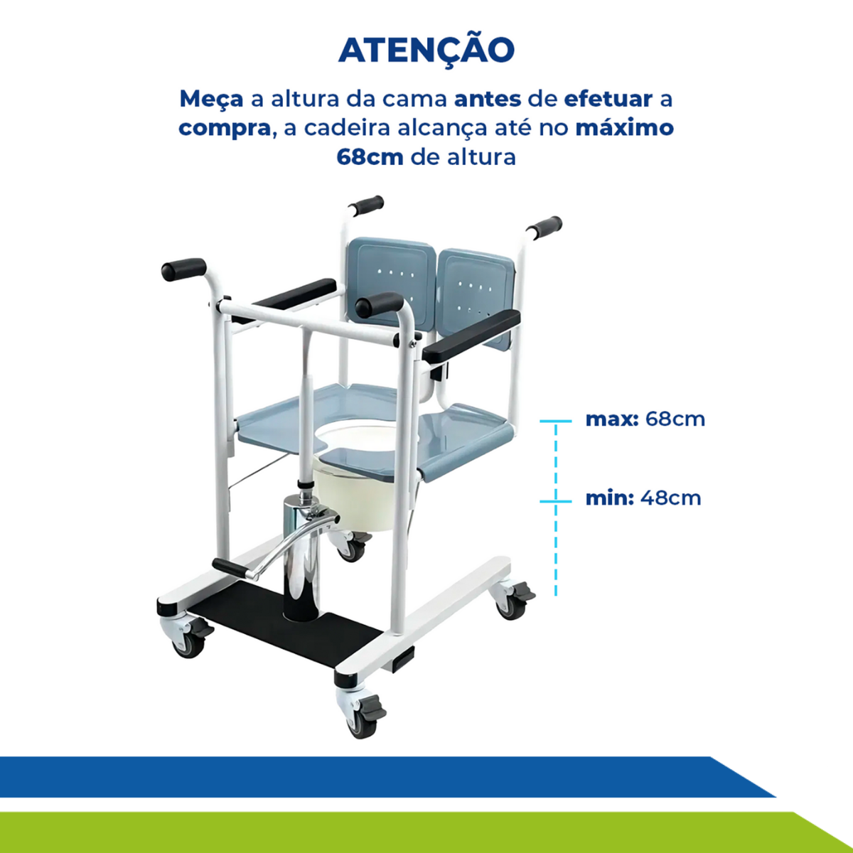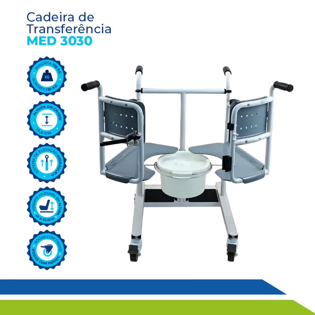 Recupere a autonomia e a dignidade de quem você ama com a Cadeira de Transferência Hidráulica, ela foi desenvolvida para proporcionar movimentação segura, confortável e eficiente de idosos, cadeirantes e pessoas com mobilidade reduzida. Além de garantir praticidade para o dia a dia com a comadre removível, garantindo agilidade em casos de necessidade imediata.