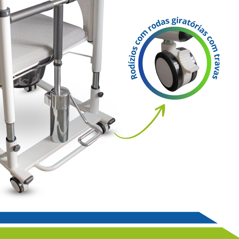 - Cadeirantes: Permite transferências seguras e eficientes entre a cadeira de rodas e o vaso sanitário, cama ou outros assentos;