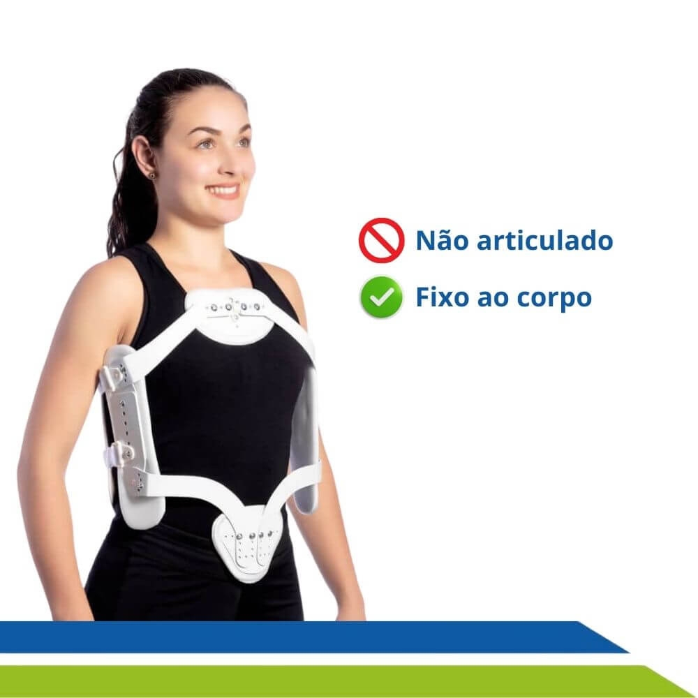 Pesando cerca de 450g, ele deve ser usado apenas sob recomendação médica ou de especialistas, assim como também deve ser ajustado por tais profissionais. Disponível nos tamanhos P, M e G, ele é regulável e fixo ao corpo, promovendo segurança e firmeza ao paciente que precisa manter a postura de forma adequada para o sucesso do tratamento.