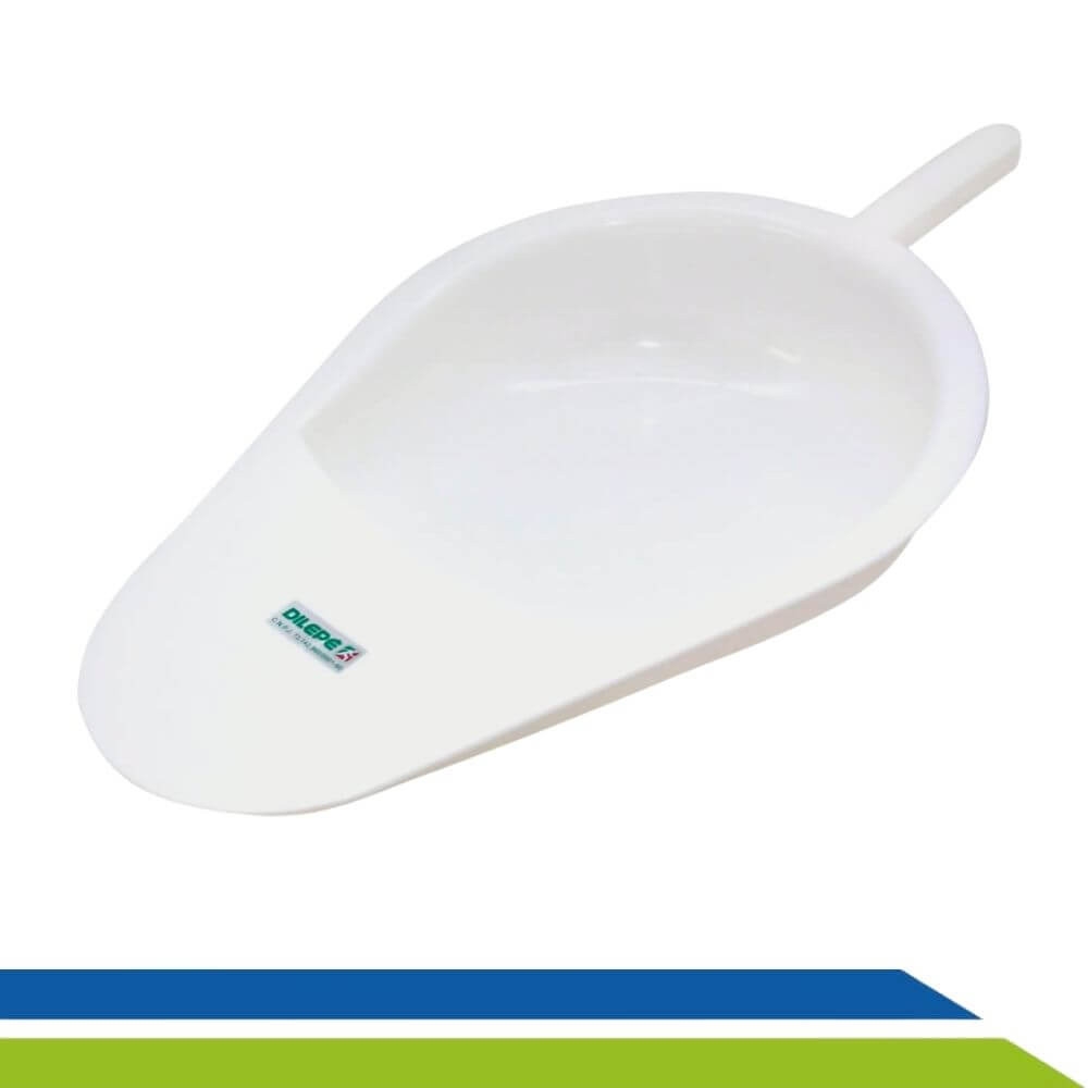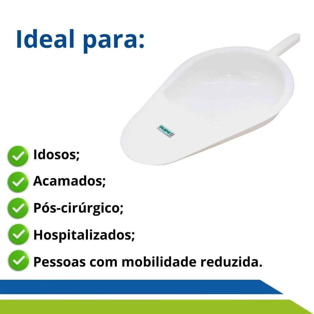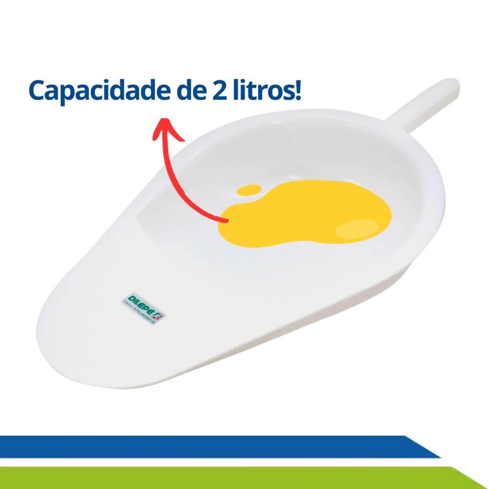 A Comadre de plástico é utilizada para coletar urina em pessoas do sexo feminino e tem capacidade para 2 Litros.