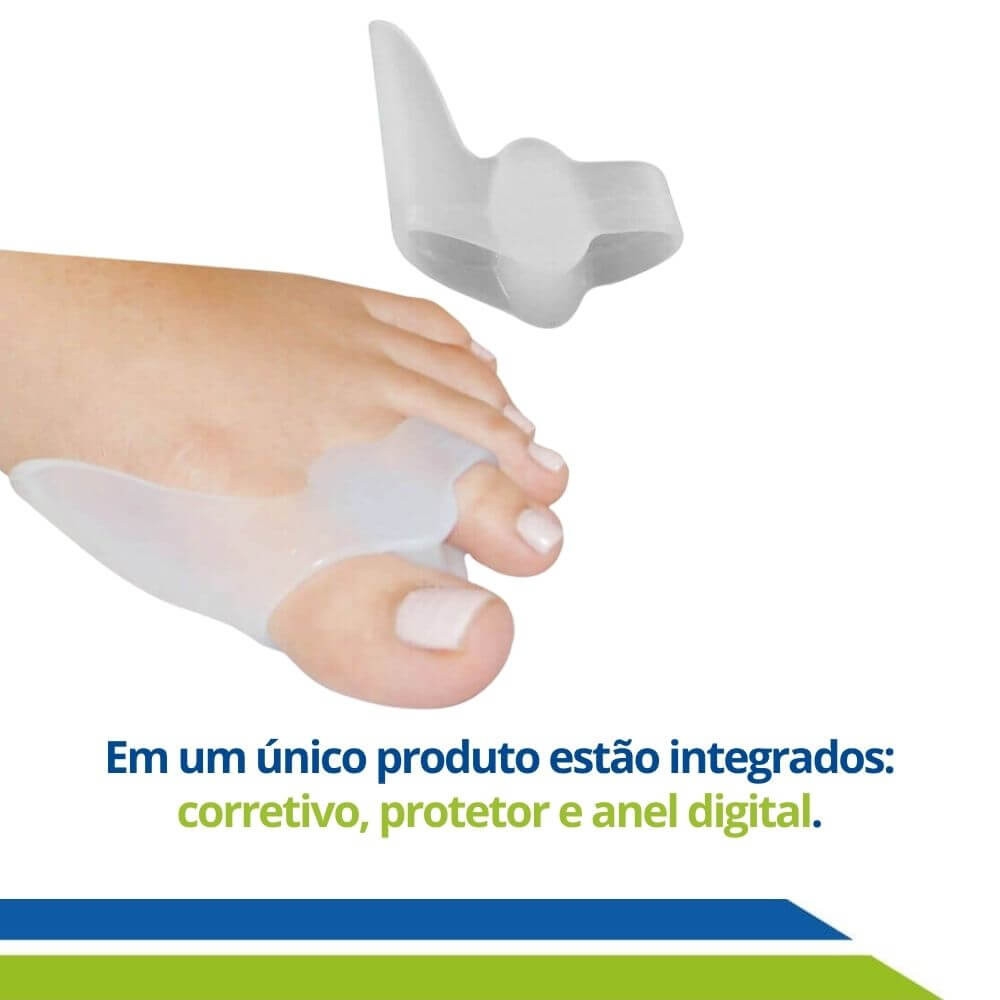 O mais completo para correção e cuidados com o joanete, pois em um único produto estão integrados, o corretivo, o protetor e o anel digital.