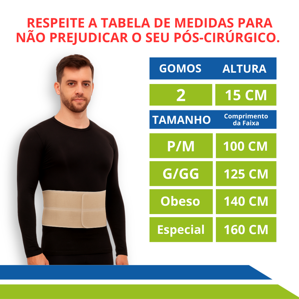 Perfeita para o período de recuperação pós-cirúrgico, auxilia na redução do risco de edemas e fibroses, além de oferecer sustentação em casos de hérnias ou obesidade.