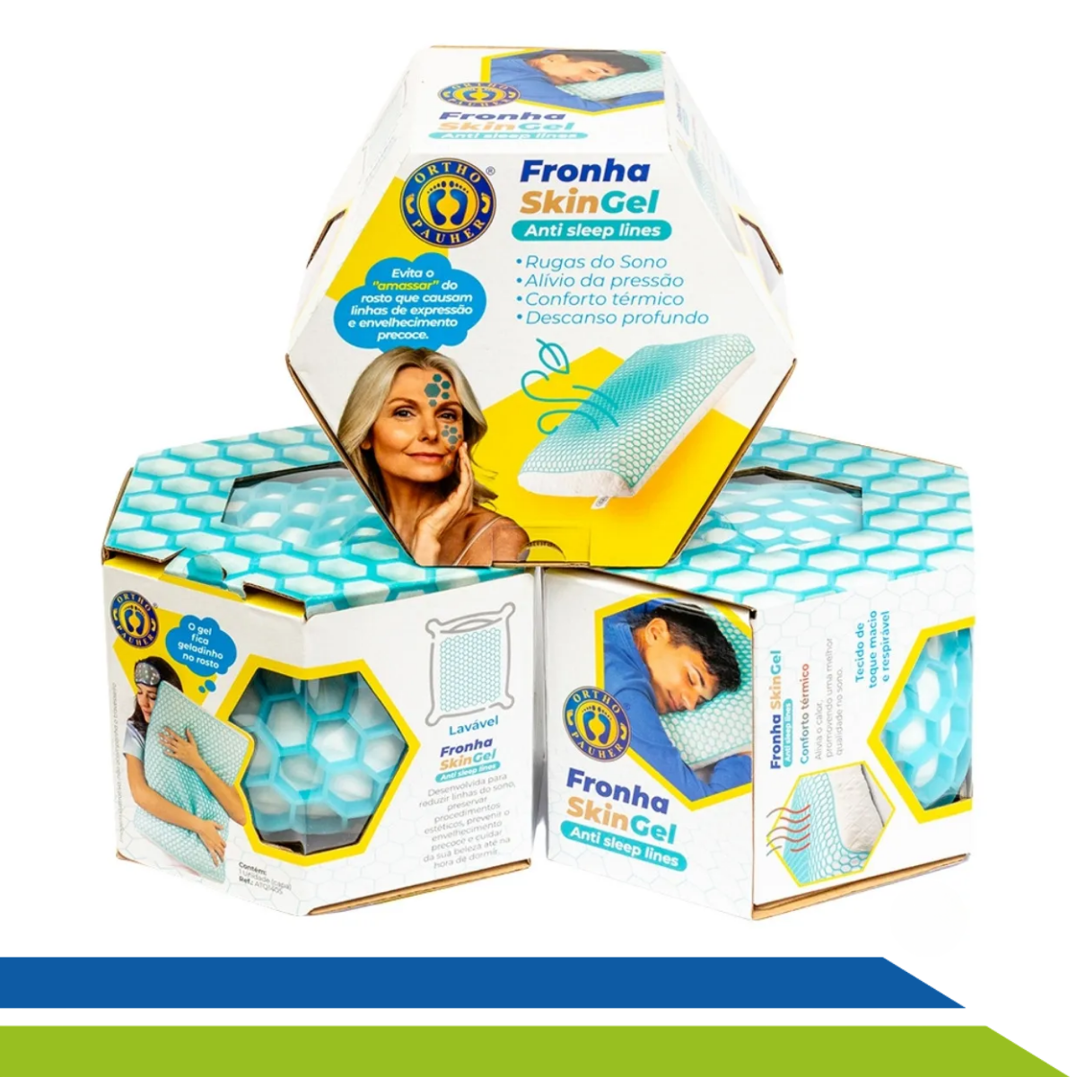 A Fronha de Gel Antirrugas Ortho Pauher Skingel foi desenvolvida para quem deseja cuidar da beleza mesmo durante o sono. Com tecnologia exclusiva em gel com colmeias flexíveis, ela reduz as sleep lines (rugas do sono), preserva os resultados de procedimentos estéticos e previne o envelhecimento precoce da pele.