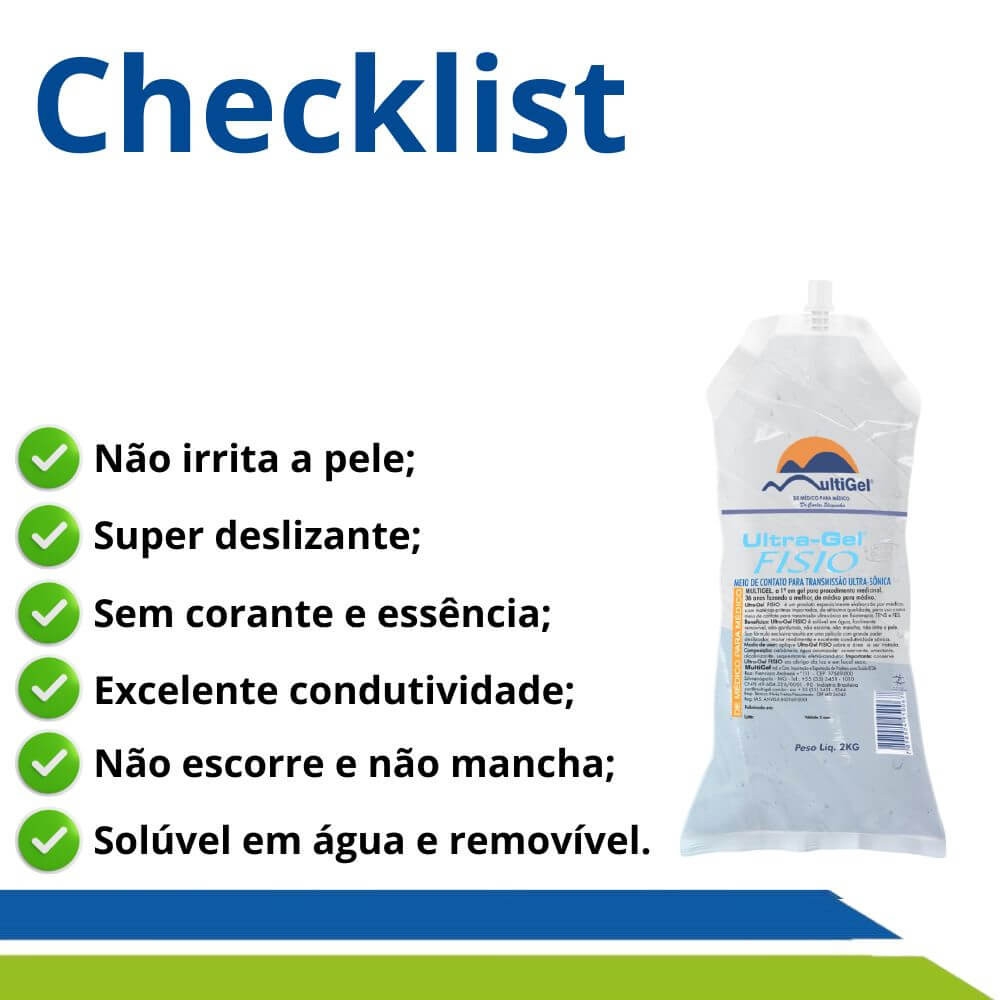 O gel é um composto com textura emoliente de água, sendo formulado como condutor para aparelhos de exame/tratamento de pele, eletroterapias como ultrassom terapêutico, TENS, FES e Corrente Russa, entre outros.