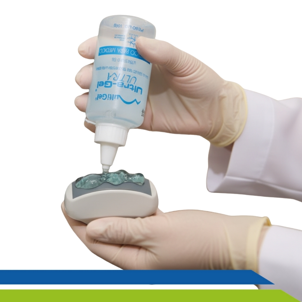 Funciona como meio condutor, essencial para exames e tratamentos com ultrassom, eletrocardiograma e procedimentos dermatológicos.
