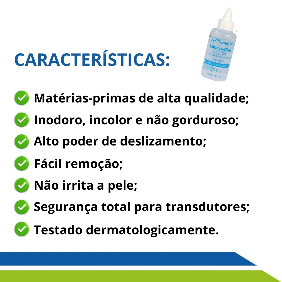 Desenvolvido com matérias-primas importadas e testado dermatologicamente, ele garante excelente transmissão ultrassônica, sem agredir a pele ou danificar o equipamento.