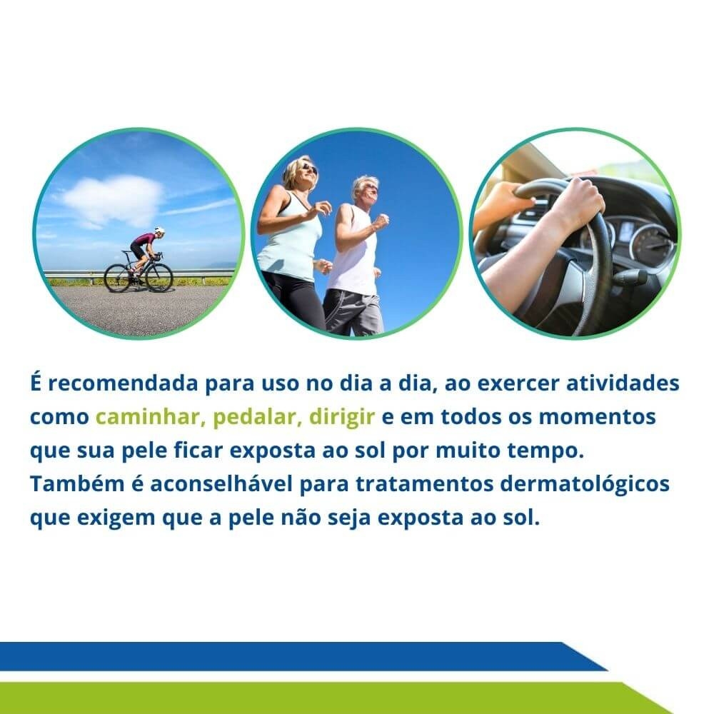 As luvas e manguito de proteção solar da New Form bloqueiam 97,5% dos raios UVA e UVB. É recomendada para uso no dia a dia, ao exercer atividades como caminhar, pedalar, dirigir e em todos os momentos que suas mãos e/ou braços ficarem expostas ao sol por muito tempo. Também é aconselhável para tratamentos dermatológicos que exigem que a pele não seja exposta ao sol (aplicações de laser, pós peeling e queimaduras).