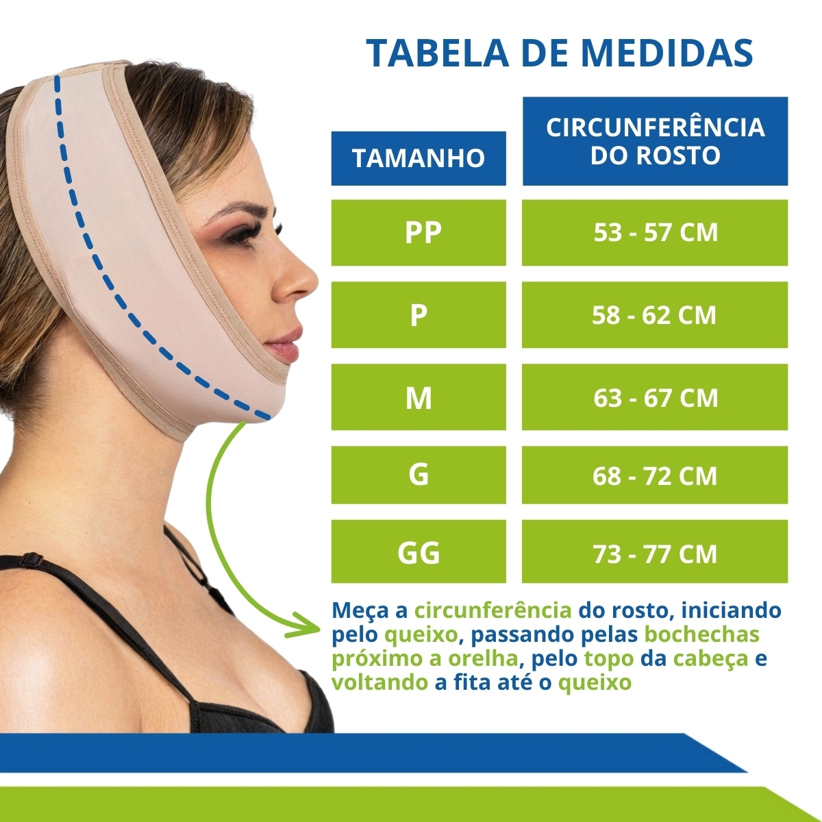 A Faixa Mentoniana fornece suporte e compressão à área do queixo, mandíbula e orelha. Produzida com o tecido Emana, ela ajuda a reduzir o inchaço, minimizar hematomas e acelerar o processo de cicatrização após cirurgias faciais, como Lipo de Papada, Lifting, Bichectomia e Otoplastia..