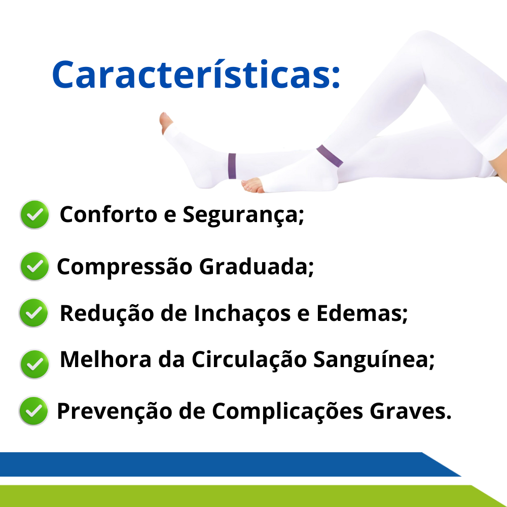 Essas meias aumentam a velocidade da circulação venosa, evitando a formação de coágulos que podem causar trombose venosa profunda (TVP) e embolia pulmonar, riscos comuns durante e após cirurgias.