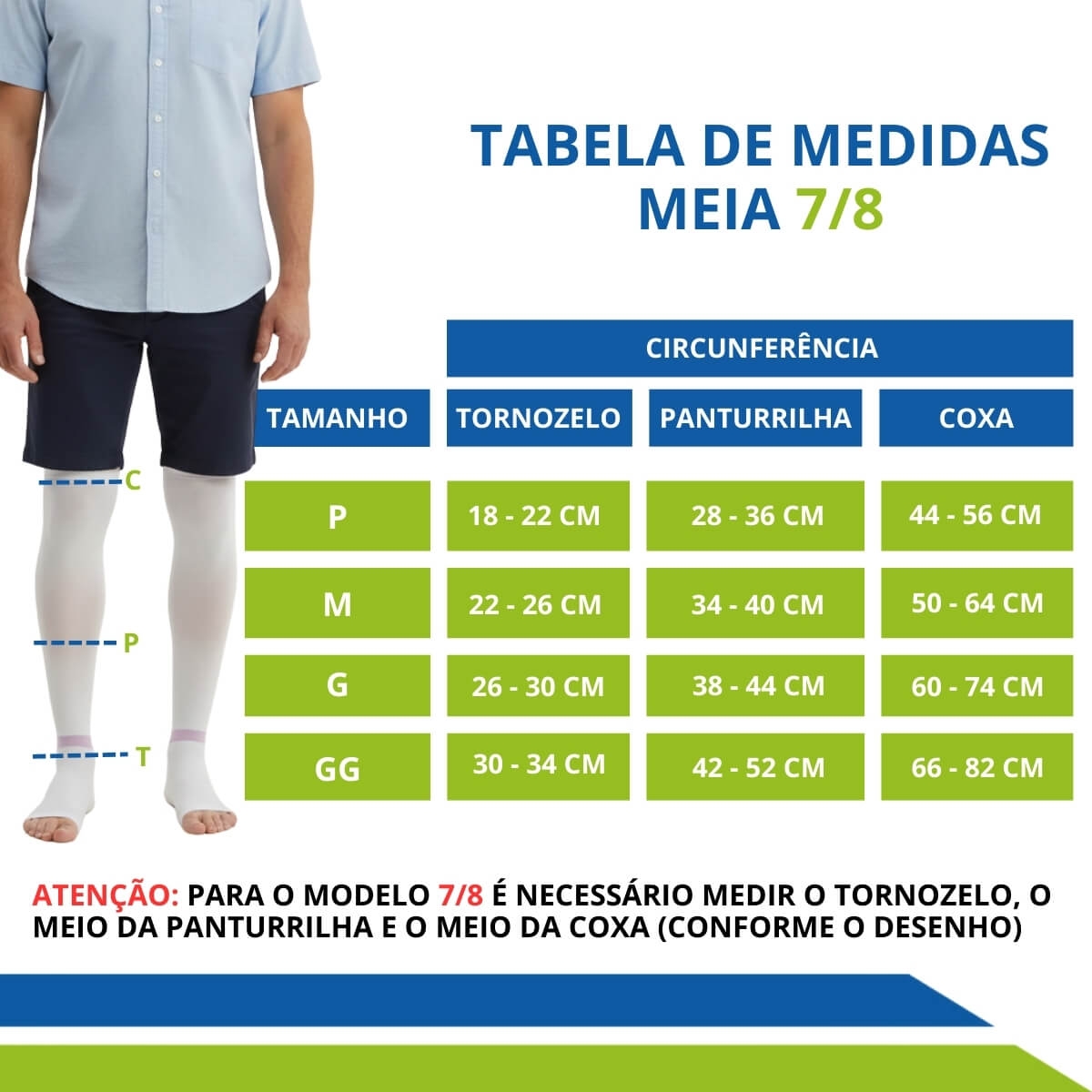 Conforme os padrões internacionais de compressão, o efeito compressivo é garantido entre 3 e 6 meses, podendo variar conforme os cuidados de uso e conservação.