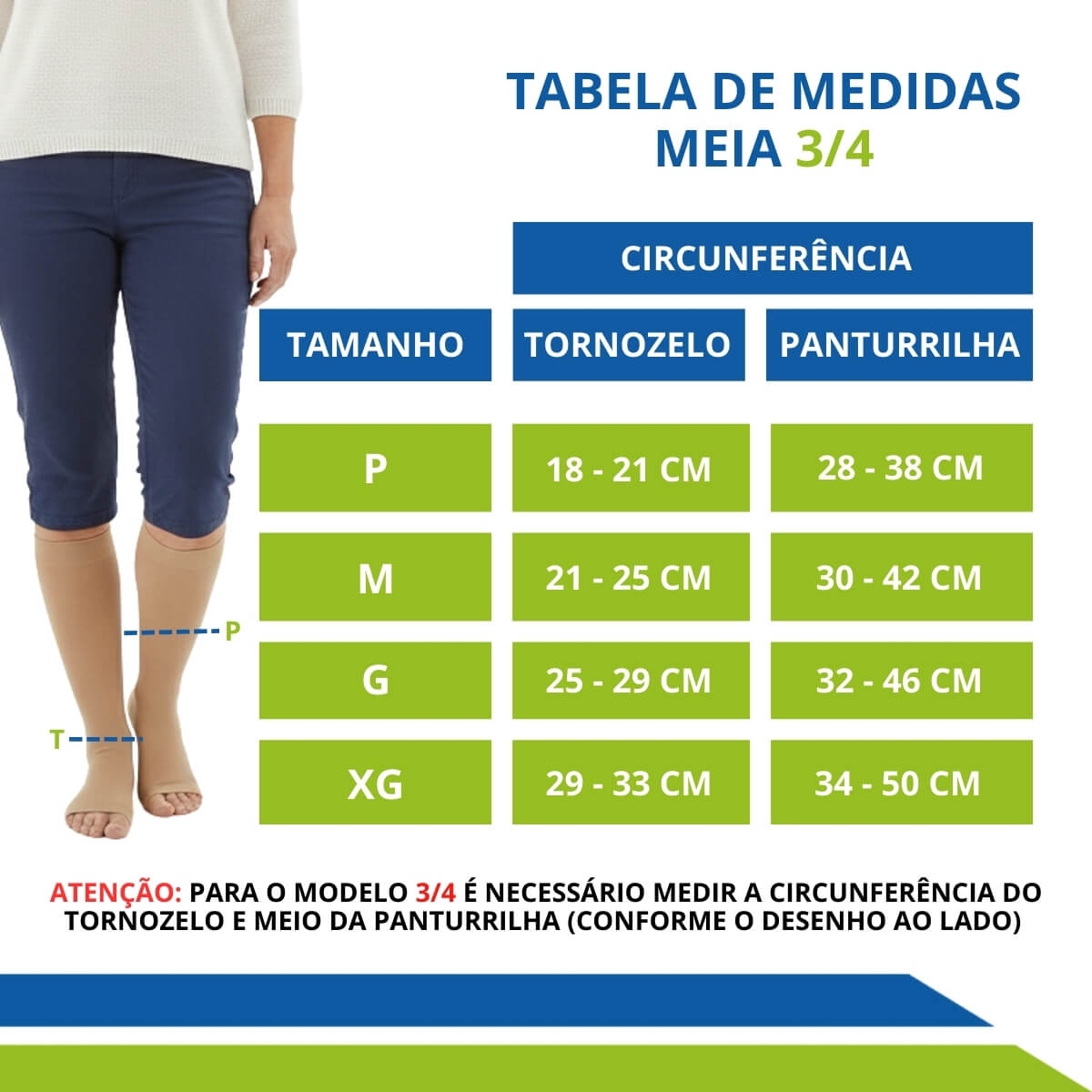 Escolher o tamanho correto é essencial para que a compressão funcione adequadamente.