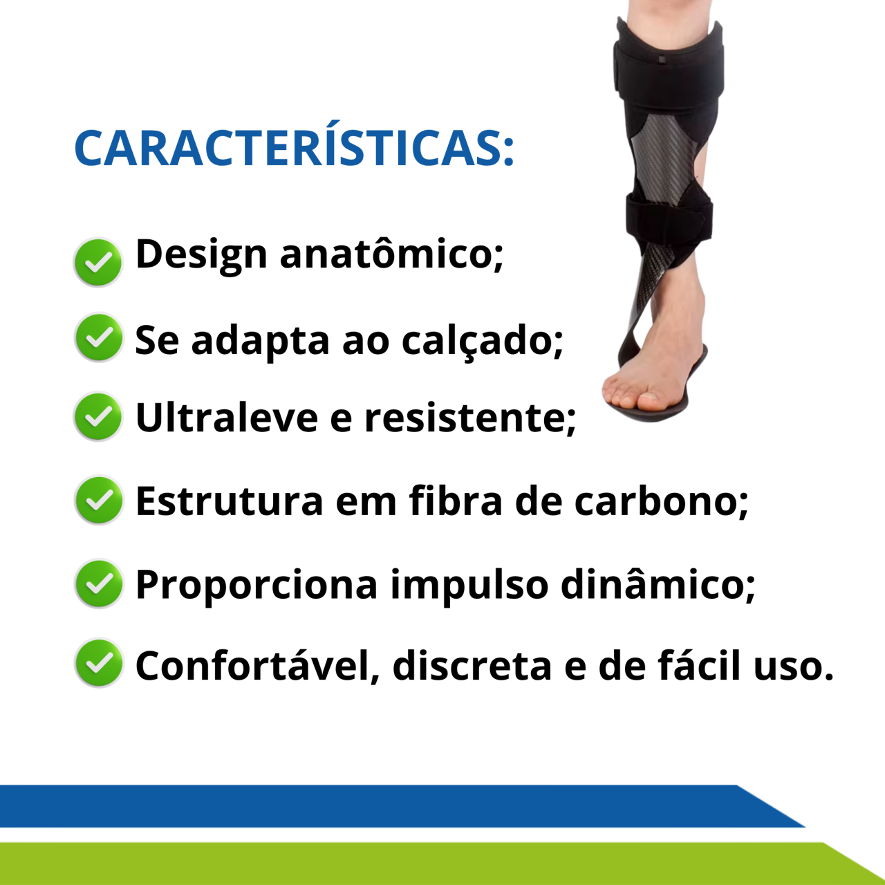 A AFO Dinâmica Carbon Walk é uma órtese ortopédica de alta performance desenvolvida para auxiliar pacientes com pé caído, fraqueza muscular e dificuldades na marcha.