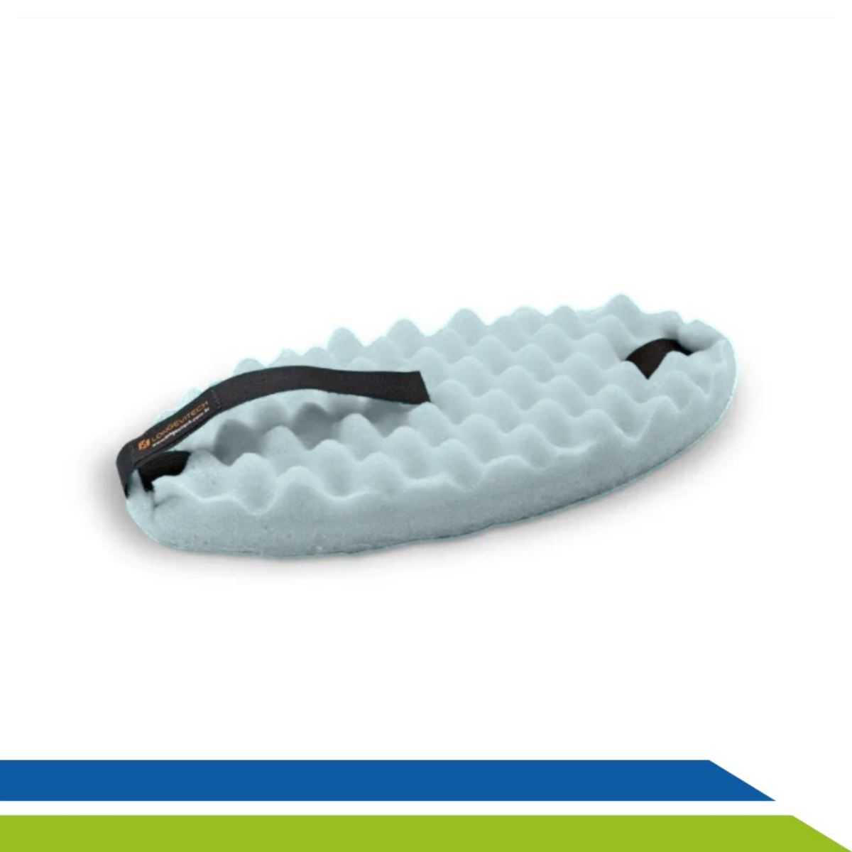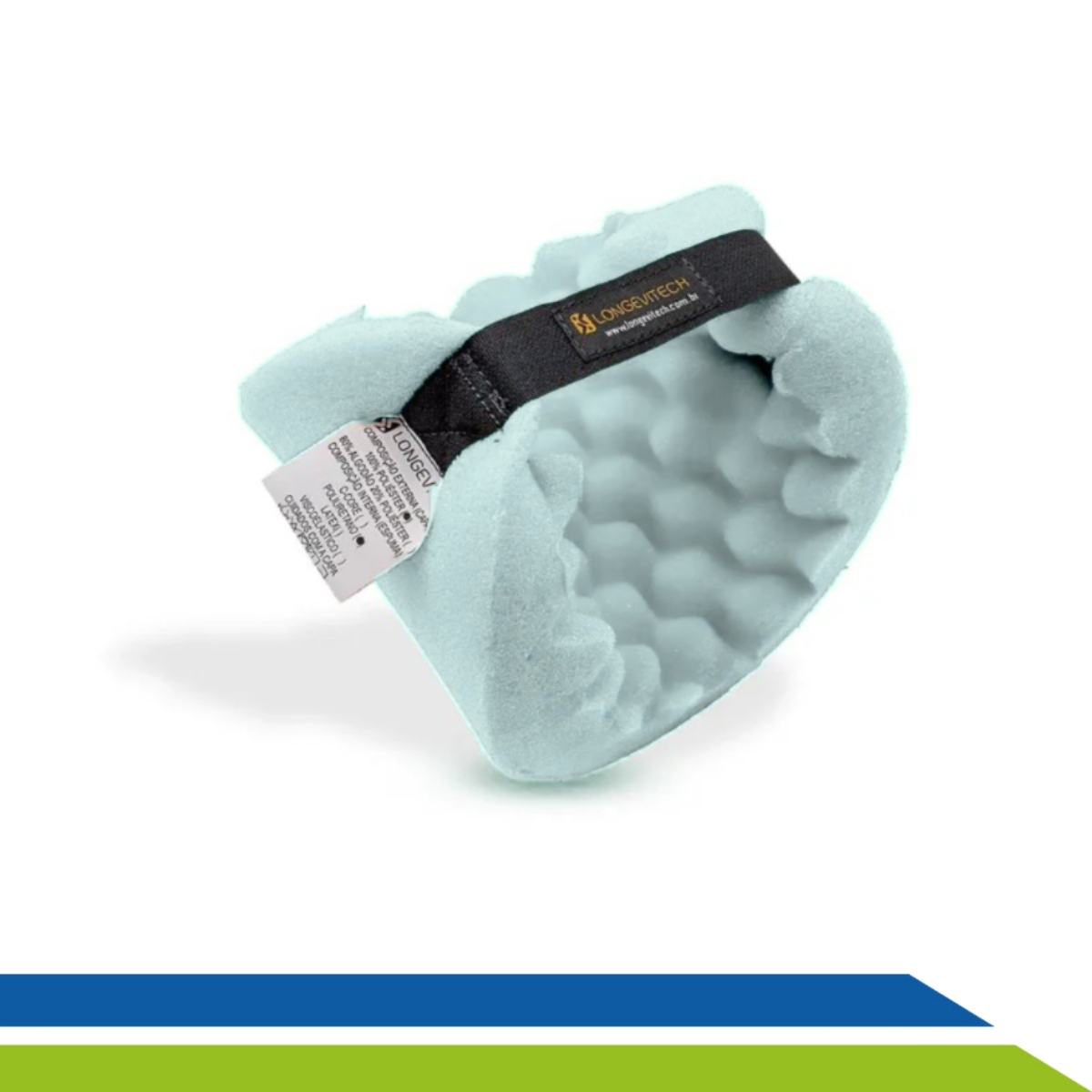 O protetor é confeccionado em espuma de poliuretano D23, um material macio e de alta densidade que distribui a pressão de forma uniforme, aliviando os pontos de atrito. Possui superfície perfilada em caixa de ovo que permite a circulação do ar, evitando o acúmulo de umidade, proporcionando maior conforto.