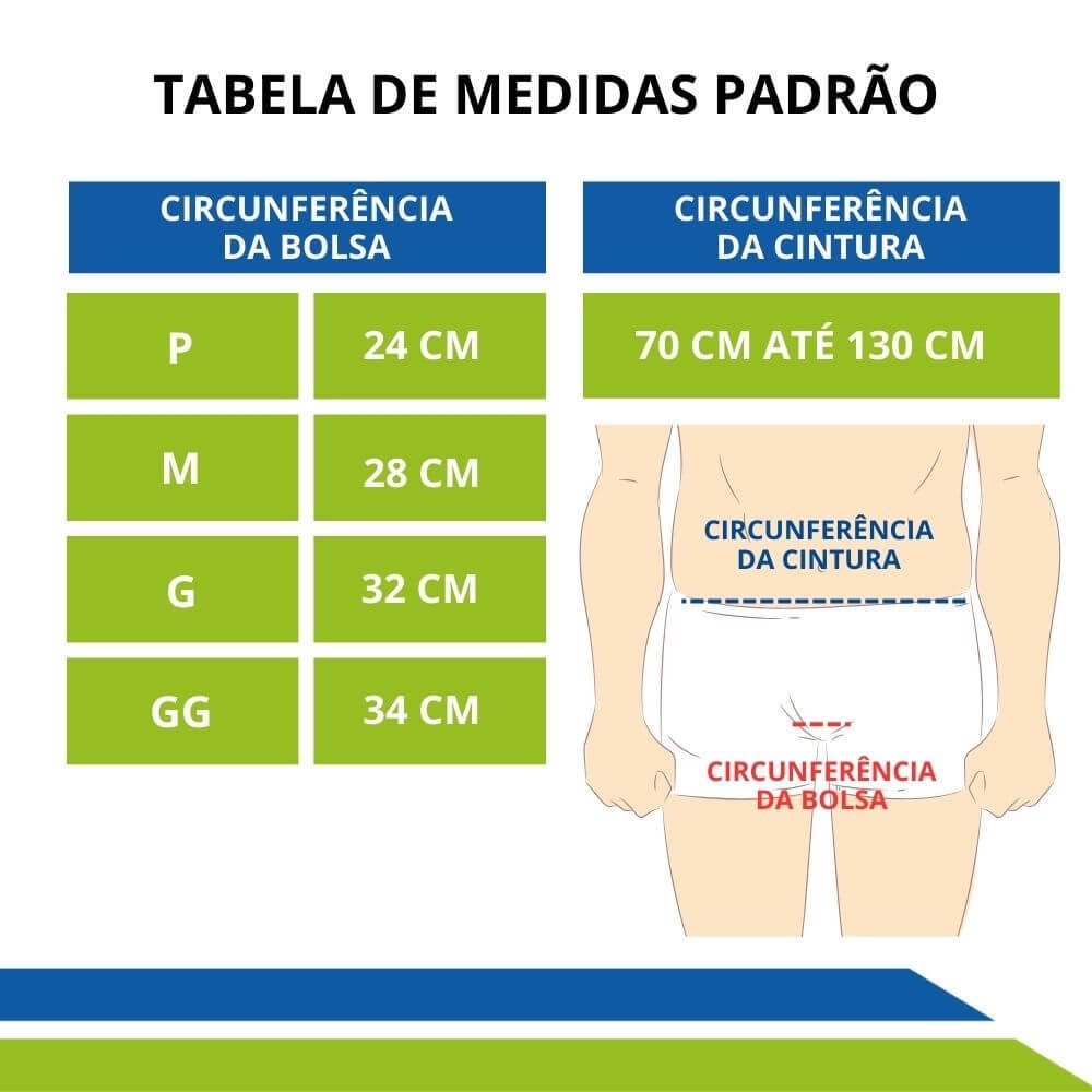 O suporte atende pessoas com circunferência da cintura de 70cm até 130cm.