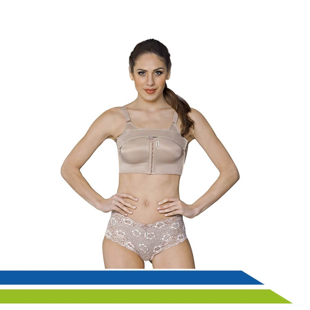 Em cirurgias nas mamas, como mamoplastias e implantes de silicone, recomenda-se o uso de sutiãs pós-cirúrgicos, com bojo pré-moldado para tornar os seios mais modelados com menos compressão na região da mama, ao passo que mantém as suturas firmes e acelera o processo de cicatrização.