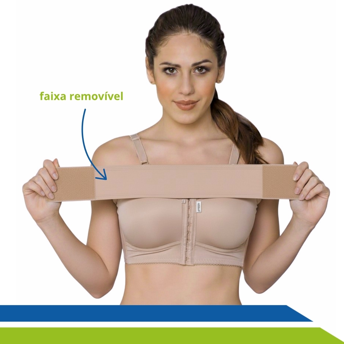 Sutiã Pós-Cirúrgico com Bojo Pré-Moldado, Fechamento Frontal e Faixa para contenção de Prótese alta. Tenha conforto e bem-estar com o Sutiã da Macom