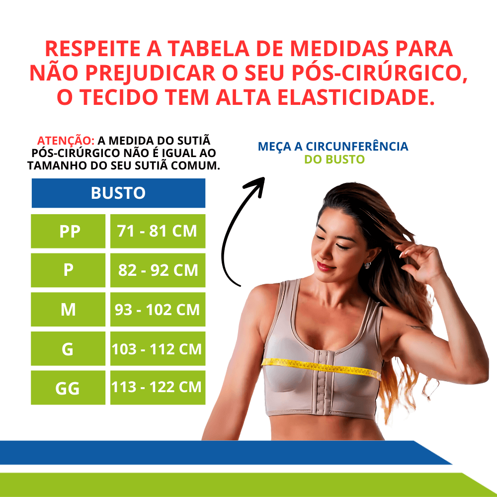 Todas as costuras dos sutiãs são externas para não marcar o corpo nem causar desconforto durante o processo pós-cirúrgico isso porque a pele fica fragilizada e esse desconforto pode atrapalhar o resultado da cirurgia.