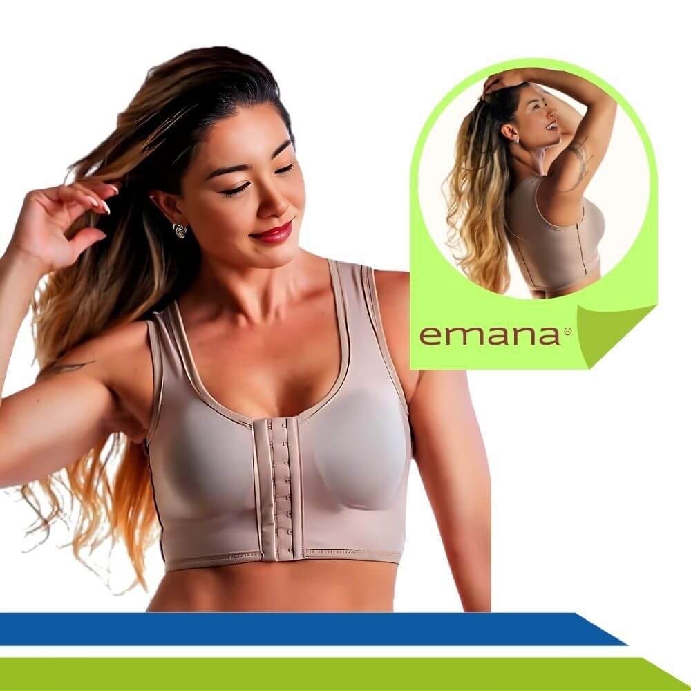 Sua alça regata oferece cobertura adicional e suporte, sendo ideal para proporcionar segurança e estabilidade aos seios e ao tórax. Além disso, ele é confeccionado em tecido Emana, oferecendo um toque suave, agradável e respirável, proporcionando bem-estar durante todo o processo Pós-Operatório.