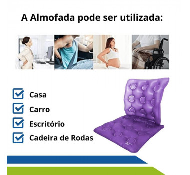 Ela é indicada para pessoas que permanecem sentadas por longos períodos, cadeirantes, hemorroidas, dores e lesões no cóccix e pós-operatório. Esse é o melhor produto de PVC para prevenção e tratamento da UPP- Úlcera por Pressão (Escaras).