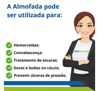 Ela é indicada para pessoas que permanecem sentadas por longos períodos, cadeirantes, hemorroidas, dores e lesões no cóccix e pós-operatório. Esse é o melhor produto de PVC para prevenção e tratamento da UPP- Úlcera por Pressão (Escaras).