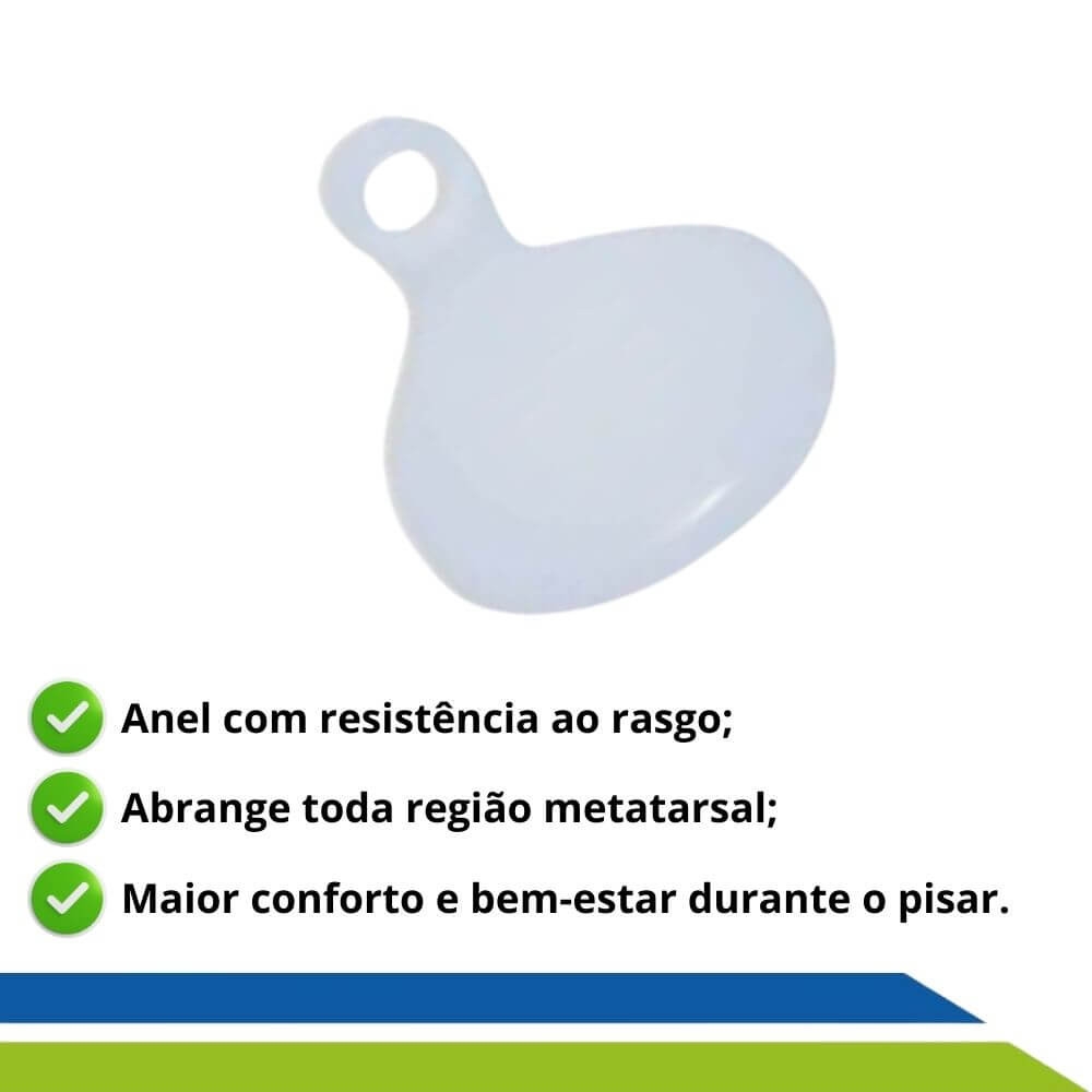 Este produto foi confeccionado com exclusiva fórmula, proporcionado maior durabilidade, Anel com alta resistência ao rasgo. Seu formato ovalado abrange com eficácia toda região metatarsal oferecendo maior conforto, estabilidade e bem-estar durante o pisar. Sua espessura e consistência foram especialmente fabricados para o uso ortopédico. Podendo ser usado em calçados abertos e fechados.
