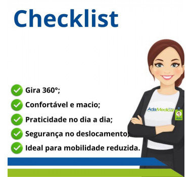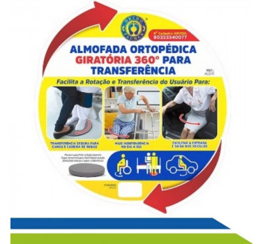 É uma almofada giratória em formato circular, que é utilizada para colocar o paciente na direção desejada facilitando e auxiliando na mobilidade e transferência segura do paciente. Ajuda a posicionar na direção desejada com um giro de até 360º. Facilita a entrada e saída do Carro; Cama ou da Cadeira de Rodas, proporcionando a praticidade desejada em suas atividades diárias.