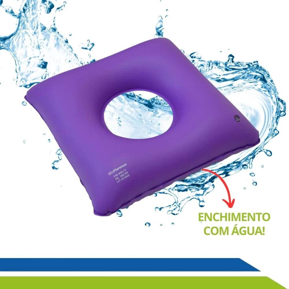A Almofada Quadrada com Orifício Água foi desenvolvida para prevenir e auxiliar no tratamento da úlcera de pressão (escaras).