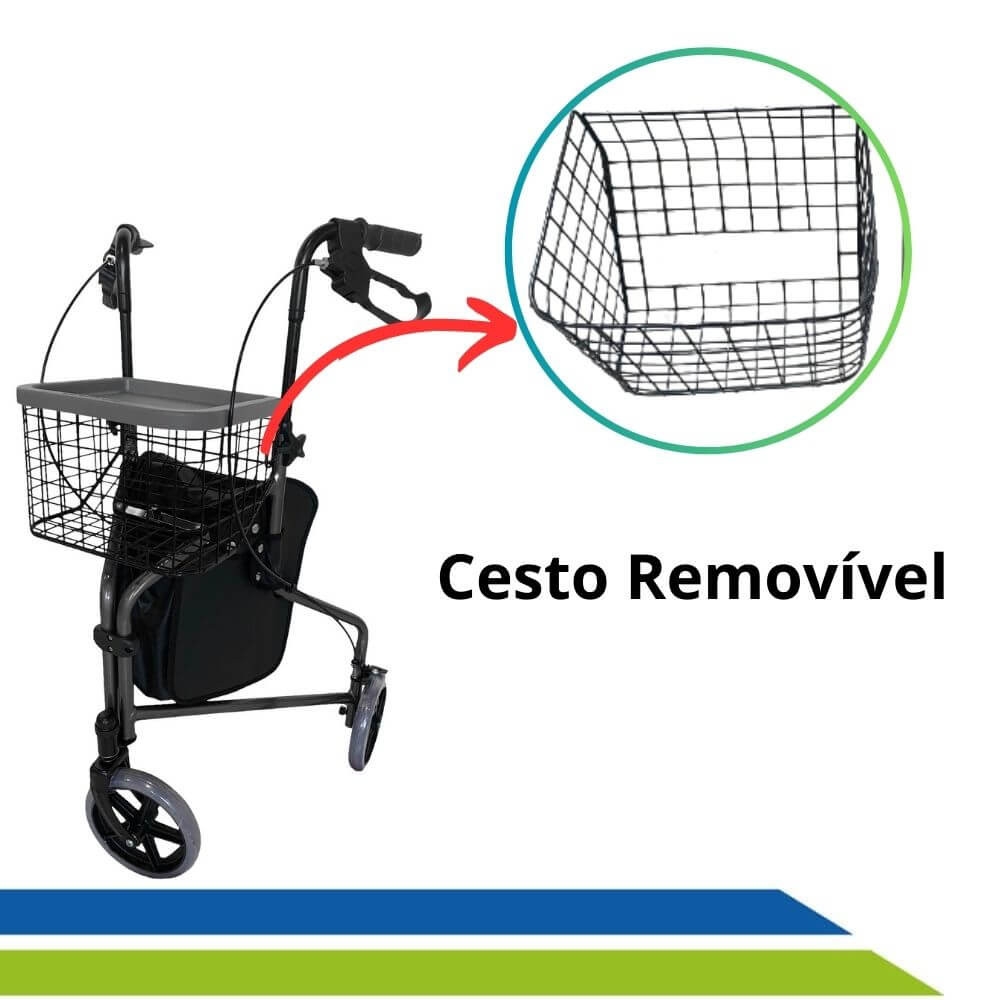 - O andador e a cesta podem ser higienizados com álcool ou sabão neutro, com auxílio de um pano macio;
