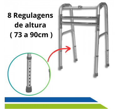 Possui tripla barra de sustentação que foi desenvolvida para dar firmeza durante o caminhar e proporcionar mais segurança ao usuário. Além de conter pontas aderentes que auxiliam a impedir que o andador escorregue e 8 regulagens de altura garantindo conforto ao usuário.