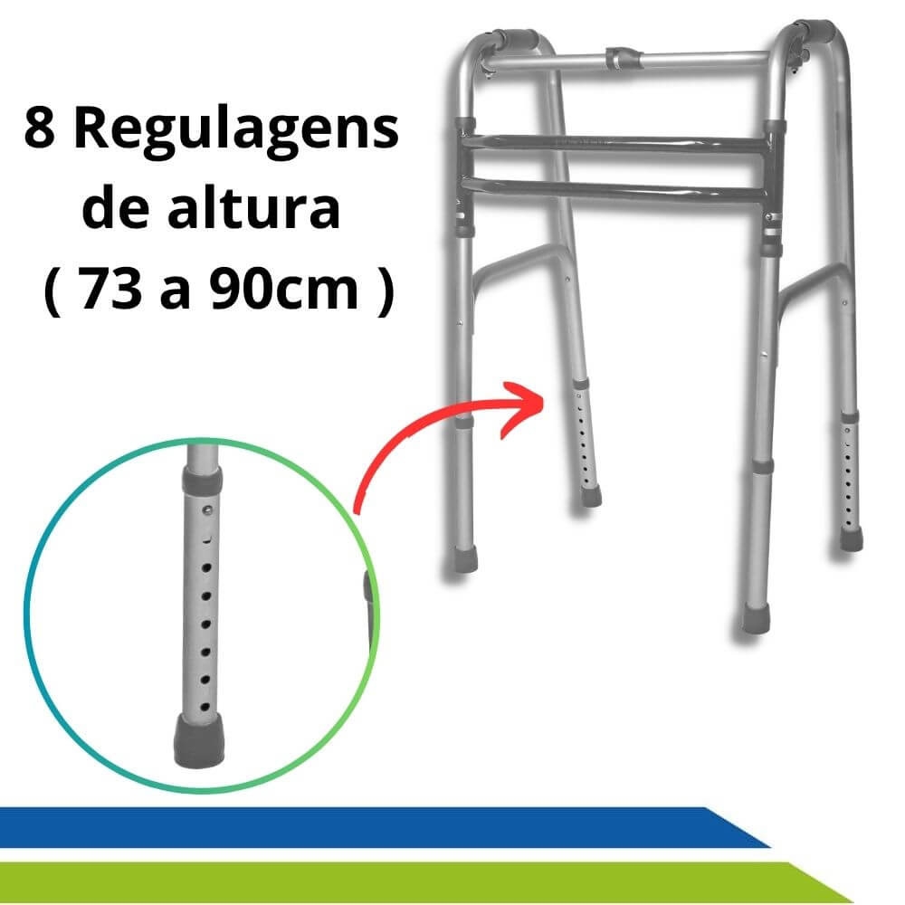 Possui tripla barra de sustentação que foi desenvolvida para dar firmeza durante o caminhar e proporcionar mais segurança ao usuário. Além de conter pontas aderentes que auxiliam a impedir que o andador escorregue e 8 regulagens de altura garantindo conforto ao usuário.
