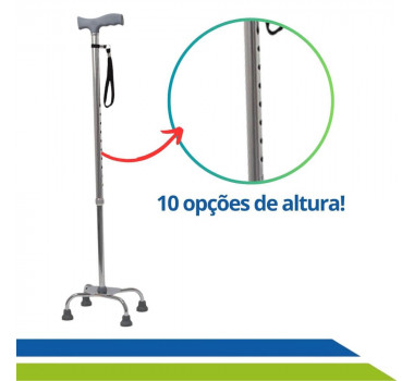 Apresentamos a Bengala 4 Pontas Hidrolight, uma bengala de qualidade excepcional que oferece suporte confiável e conforto durante a locomoção. Possui regulagem de altura por botão, o que também a torna extremamente prática para o dia a dia. Sua construção robusta e design inovador, mostram que este bastão ortopédico de quatro apoios foi projetado para atender às necessidades dos seus usuários da melhor maneira possível.