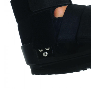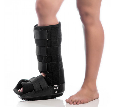 Suporte rígido confeccionado em nylon para panturrilha, tornozelo e pé, forro de espuma, formato anatômico para facilitar a marcha.