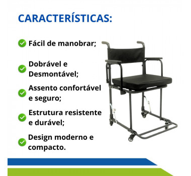 A Cadeira B5A Ortomobil foi fabricada para proporcionar segurança, conforto e praticidade no cuidado de idosos e pessoas com mobilidade reduzida.