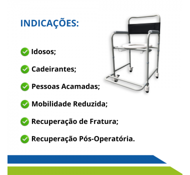 A Cadeira de Banho D30 é a melhor escolha para quem procura uma cadeira dobrável possibilitando seu armazenamento em qualquer local. Traz maior praticidade de movimento em locais com espaço reduzido através do seu sistema de giro 360º sobre o próprio eixo. É considerada a cadeira de banho de melhor custo-benefício da categoria.