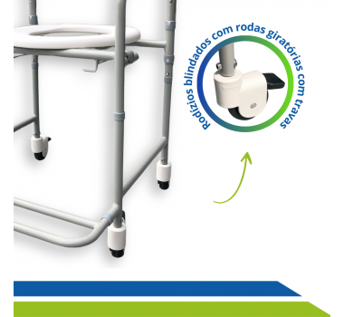- 4 rodízios blindados com rodas giratórias de 4 polegadas, e 2 travas na dianteira;