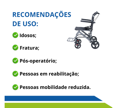Descubra a Cadeira de Rodas de Transporte Dobrável ideal para quem busca praticidade, segurança e conforto em cada deslocamento. Projetada para atender às necessidades de idosos, pessoas em pós-operatório, reabilitação de fraturas ou com mobilidade temporária, esta cadeira é a solução perfeita para garantir autonomia e bem-estar.