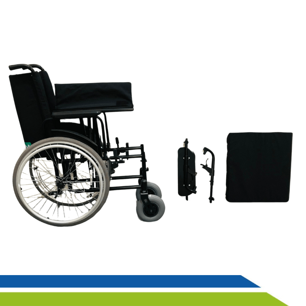 A Cadeira de Rodas MA3FO é constituída por duas partes laterais, unidas por meio de tubos em aço no formato de duplo X tubular, possui estrutura dobrável com fechamento lateral, sua estrutura é em Aço Carbono, o que garante a resistência e durabilidade, além de garantir conforto redobrado, pois conta com almofada no assento com espuma de 5 cm, e estofamento de encosto acolchoado em nylon de alta resistência proporcionando conforto para o dia a dia.