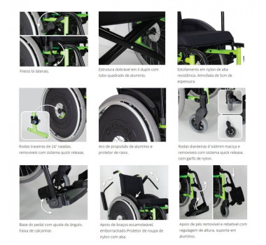 A Cadeira de Rodas Modelo MA3E, especialmente desenvolvida com os mais criteriosos padrões de qualidade para garantir qualidade, conforto e resistência com o que há de mais inovador no mercado em termos de mobilidade e melhorando a rotina e cotidiano dos usuários.