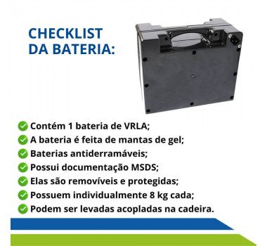 A Cadeira de Rodas possui autonomia de até 15 km com uma única carga, com velocidade de até 6km/h garantindo liberdade para ir aonde quiser.