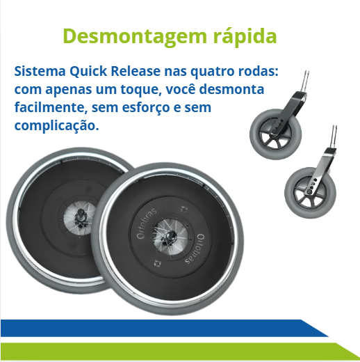 - Sistema de desmontagem rápida “quick release” nas quatro rodas