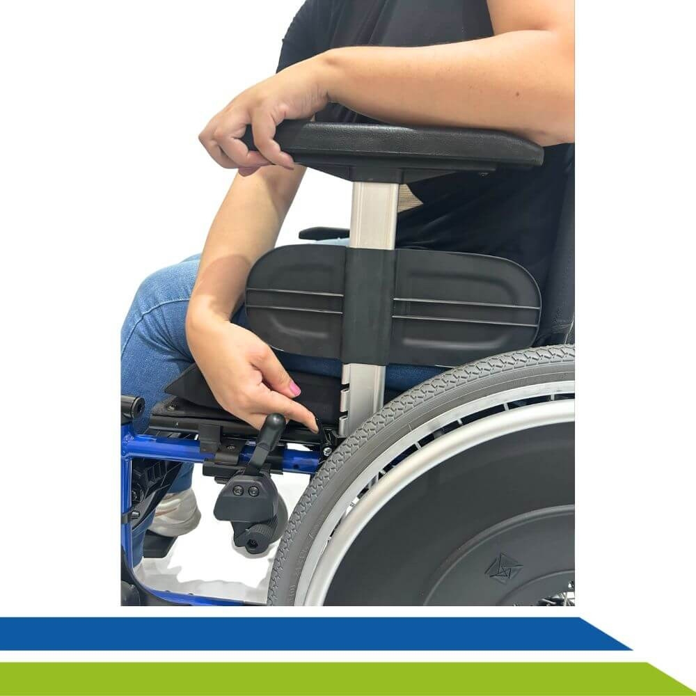 - Apoio de pés eleváveis, com apoio de panturrilha e com sistema de pedal "Swingaway In-out" (rebatível lateralmente, externamente e internamente);