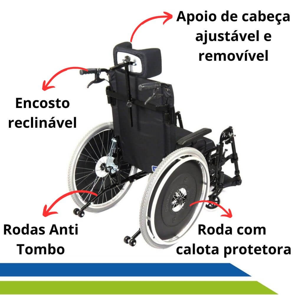Basculante desde 3 a 25º e com encosto reclinável até 150º, a Cadeira de Rodas Ortobras permite que o usuário mude sua postura, variando as zonas do corpo que estão submetidas continuamente à pressão, reduzindo a possibilidade de escaras e outros transtornos na postura. Permite também regular a altura do assento (desde 46 a 50 cm), o centro de gravidade (em até 06 posições), possibilidade de alteração do ângulo da placa do eixo dianteiro para mantê-lo sempre na perpendicular em relação ao piso (função necessária sempre que houver alteração no centro de gravidade da cadeira); e a altura do apoio de braços. Com capacidade de até 120kg é altamente confortável e segura.