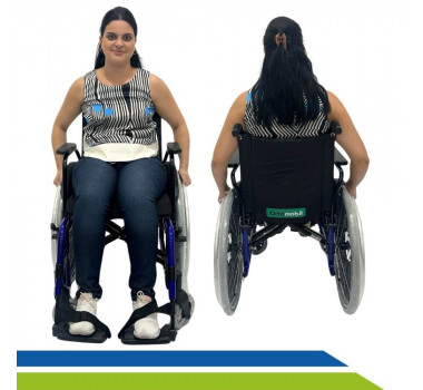 - Apoio de pés: Rebatível, com ajuste tíbio tárcico e fita de calcanhar;