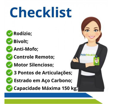Possui 3 pontos de articulações (joelhos, coxas e lombar) permitindo ao usuário escolher a posição ideal para refeições, ler, assistir televisão ou simplesmente descansar, com a facilidade do controle remoto.
