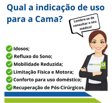 Ela possui 2 movimentos (regulagem da altura dos pés e cabeceira) promovendo melhor circulação e melhor posicionamento. Sendo 3 pontos de articulação (joelhos, coxas e lombar) permitindo ao usuário escolher a posição ideal para refeições, ler, assistir televisão ou simplesmente descansar.