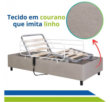 A Cama Motorizada Pilati Zeus tem lateral revestida tecido courano que imita linho, o que proporciona um toque suave e aconchegante.