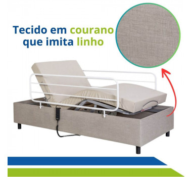 Com a lateral revestida com tecido courano que imita linho, é totalmente impermeável e de fácil higienização, além de possuir tratamento anti-mofo. Seja para refeições, ler, assistir televisão, dormir ou simplesmente descansar, a Cama Motorizada Pilati é totalmente funcional e prática, se tornando uma ótima compra. O peso máximo suportado é de 150kg (incluindo peso do usuário + o peso do colchão e grades se tiver). É recomendado que a inclinação da parte superior da cama sem colchão seja de 60°, pois evita que o usuário caia da cama.
